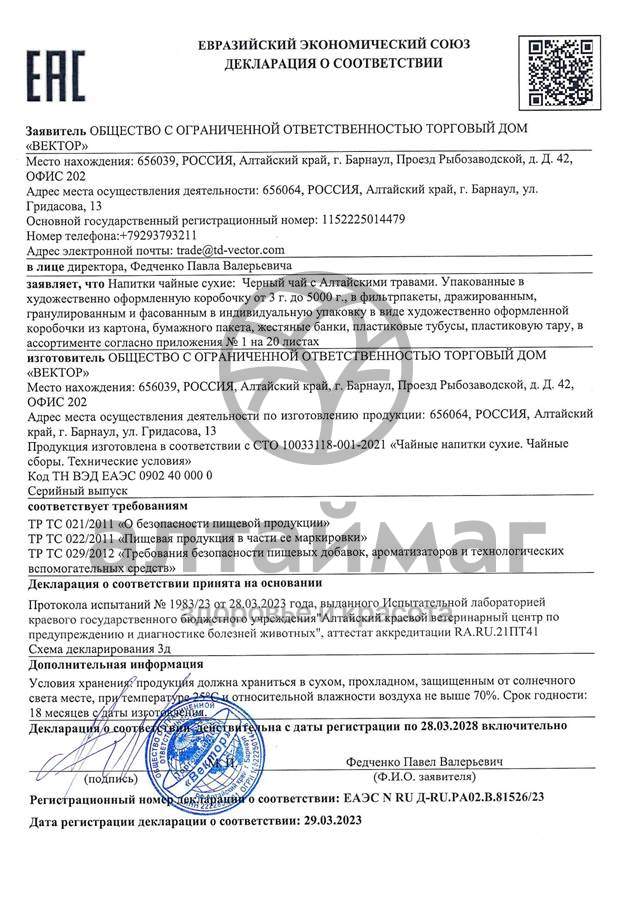 Чай черный с Саган-Дайля Вектор №20 в Нижнем Новгороде