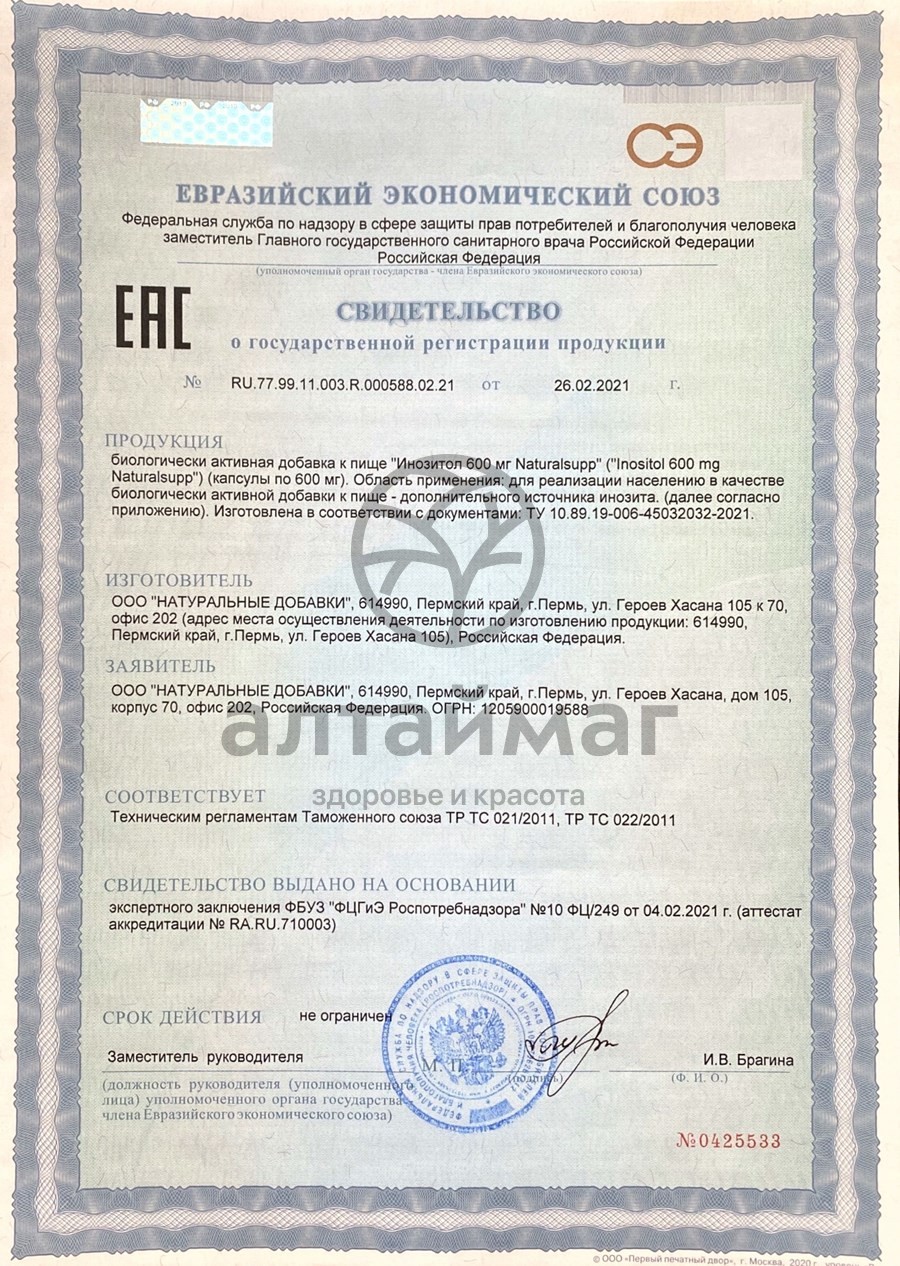 - Купите Инозитол 600мг Naturalsupp №60 в Нижнем Новгороде по доступной цене 619 ₽ с доставкой на дом или заберите Ваш заказ в Нижнем Новгороде из ближайшего пункта выдачи, сделав заказ на AltaiMag.ru.