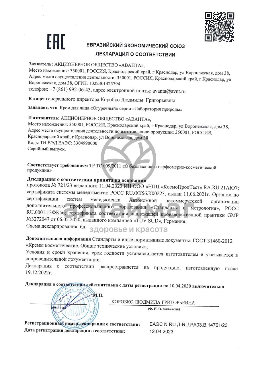 Крем для лица «Огуречный» в Нижнем Новгороде