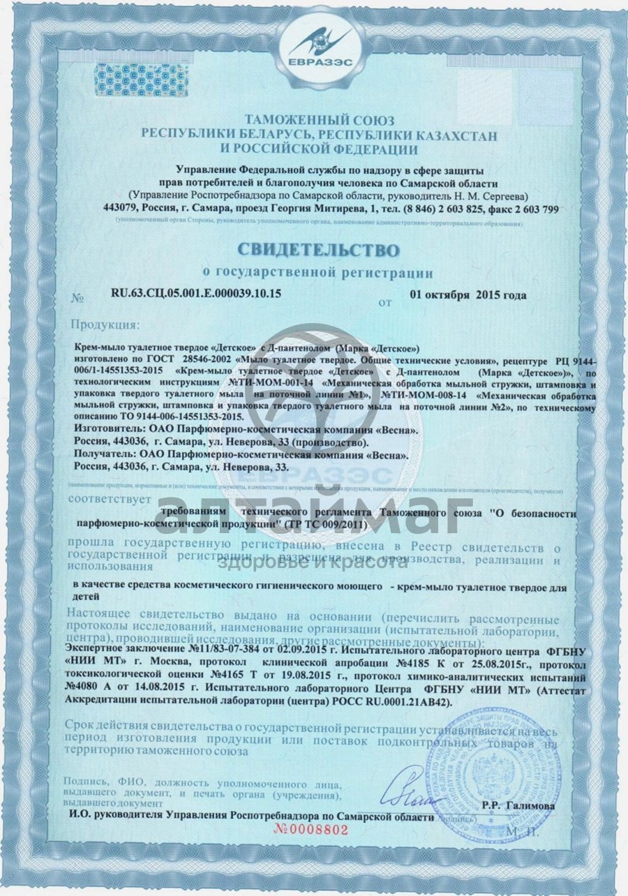 Детское твердое крем-мыло Весна с Д-пантенолом - произведено из сырья высочайшего качества, не содержит красителей.- Для детей с рождения;