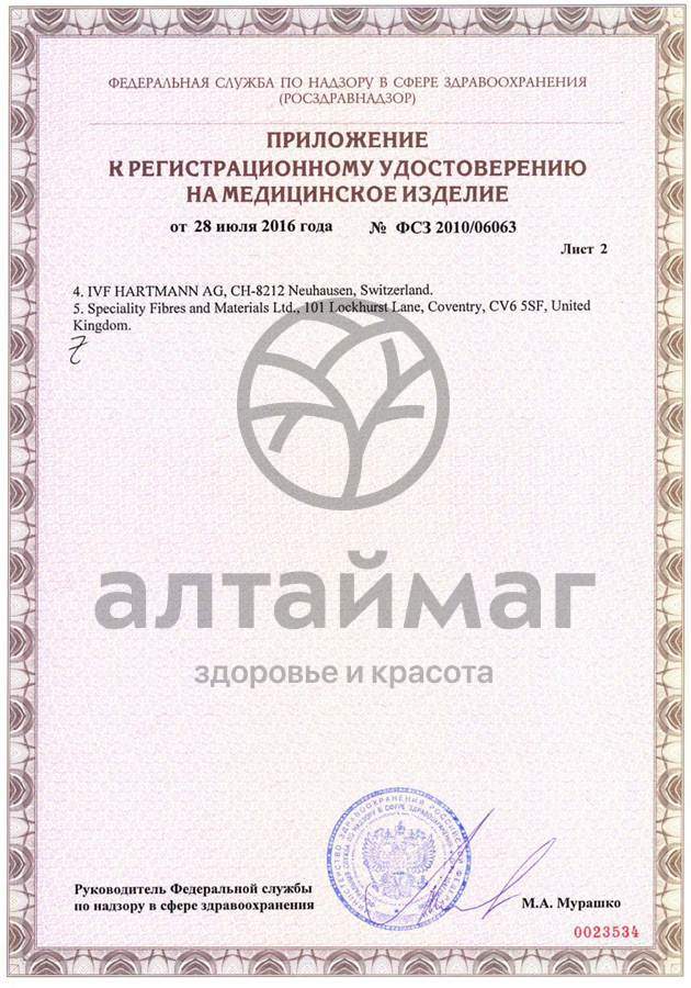 Смена повязки – от суток до нескольких дней (когда волокна полностью преобразуются в гель). Полученный гель безболезненно удаляется из раны промыванием, также может постепенно раствориться сам.