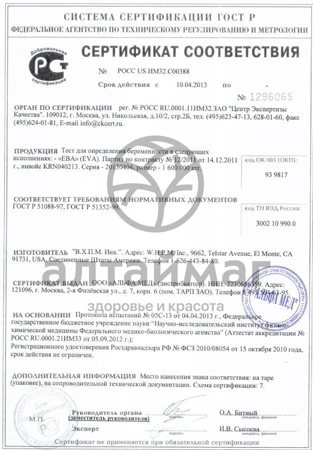 Есть вопросы по товару "Тест EVA для определения беременности"?