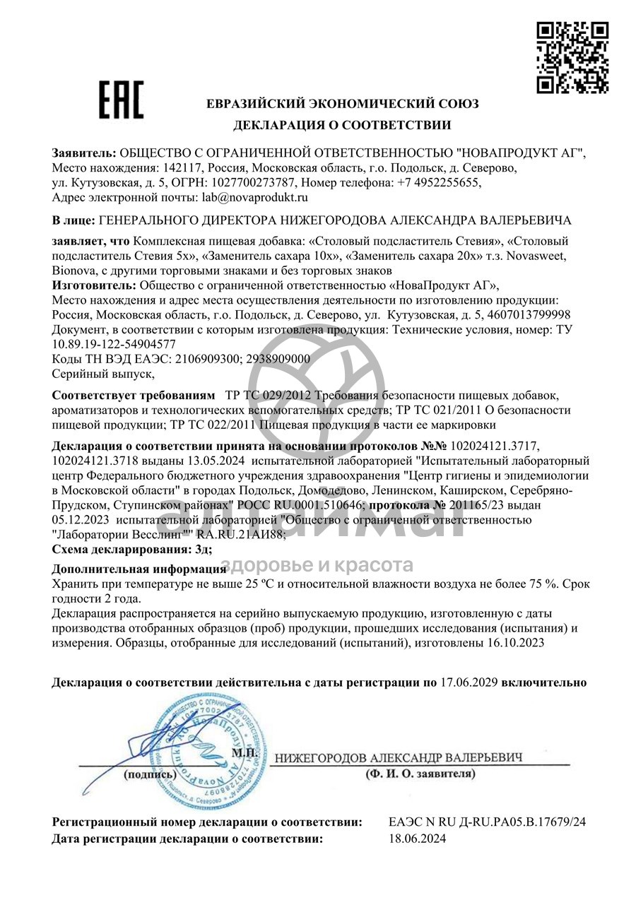 Есть вопросы по товару "Заменитель сахара 10х Новасвит 120 саше"?